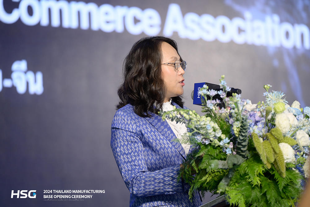 隨后,泰中僑商聯合會副主席馬寧伽上臺發言:“HSG宏山激光選擇在泰國曼谷建立其全球制造基地的首站,這是公司對“一帶一路”倡議的積極響應,也是對泰國投資環境的高度認可。我們期待HSG宏山激光以此為契機,深耕泰國本地工業,與泰中僑商聯合會攜手并進,共同推動高端制造供應鏈在泰國的協同發展,提升供應鏈的整合度和效率,降低生產成本,為泰國激光設備行業的技術升級和創新注入新的活力。今天,我們慶祝的不僅是HSG全球制造基地的正式啟用,更是慶祝新機遇的開啟、合作伙伴關系的深化以及本地工業發展的嶄新篇章。”