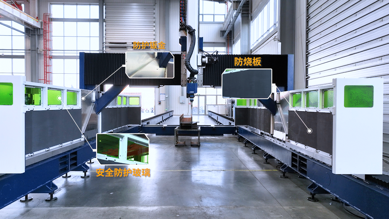 PR1500B激光切割機配備三重安全防護,橫梁兩側增加防護鈑金并覆蓋一層防燒板,防止切割熔渣飛濺,同時設備上設有安全防護玻璃,方便實時觀察切割動作,切實做到了安全穩定生產。