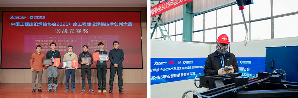 2025年11月25日至27日,中國工程建設(shè)焊接協(xié)會在山東濟寧舉辦的2025年度工程建設(shè)焊接技術(shù)創(chuàng)新大賽隆重召開,聚焦焊接技術(shù)創(chuàng)新與產(chǎn)業(yè)升級,是行業(yè)最具專業(yè)性與影響力的年度賽事之一。在這場匯聚業(yè)內(nèi)頭部企業(yè)與先進(jìn)裝備的高水平競技中,宏山激光攜自主研發(fā)的W2800T單變位機智能焊接機器人強勢登場,并憑借出色表現(xiàn)榮獲本次大賽“工藝適配創(chuàng)新獎”,以優(yōu)異成績脫穎而出。