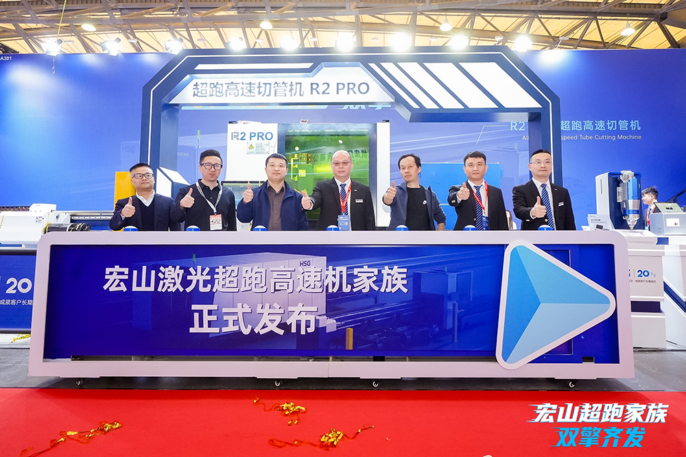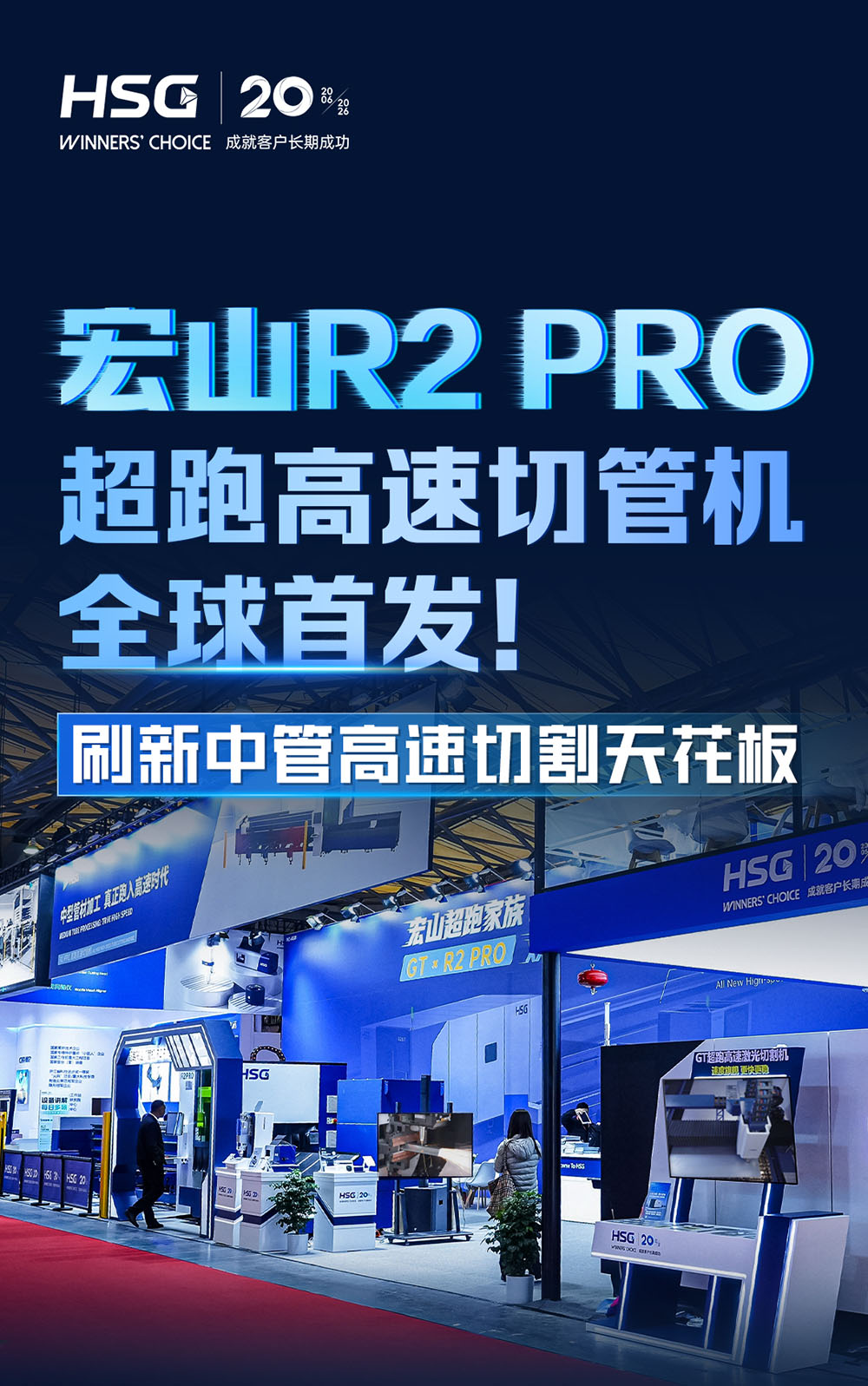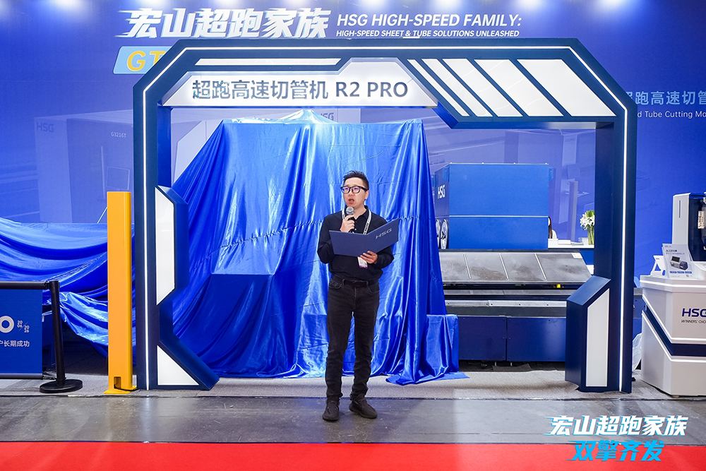 在展會現場嘉賓以及直播間粉絲的共同見證下,宏山激光超跑家族成員——R2 PRO高速切管機正式揭開神秘面紗,重新定義行業高速切管新標準。作為宏山激光在高速切管領域的又一重要成果,R2 PRO通過系統化性能升級,全面提升中管切割在速度、精度與成本控制等關鍵維度,為行業高質量加工提供全新解決方案。