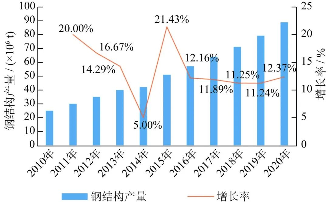 中國2010-2020年鋼結(jié)構(gòu)產(chǎn)量趨勢