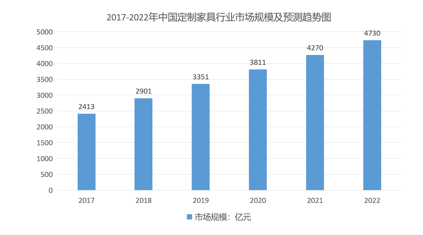 據(jù)中商產(chǎn)業(yè)研究院預(yù)測(cè),2022年中國定制家具行業(yè)市場(chǎng)規(guī)模將達(dá)4730億元,伴隨著市場(chǎng)動(dòng)態(tài)的變化,以及政策紅利的驅(qū)動(dòng),2022年進(jìn)一步承接往年良好態(tài)勢(shì),定制家具行業(yè)仍有一定的增長(zhǎng)空間。